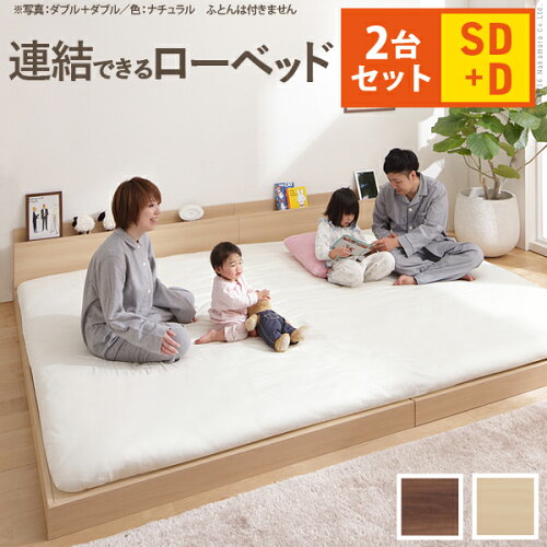 ベッド ロータイプ 連結 家族揃って布団で寝られる連結ローベッド 〔ファミーユ〕 ベッドフレームのみ セミダブル・ダブルサイズ 同色2台セット ベッドフレーム ファミリーベッド 親子ベッド 木製 宮付き コンセント セミダブル ダブル